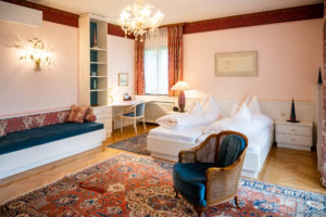 Our charming housekeeper Martha awaits our guests on arrival with a small gift and a guided tour of the house. The Landhaus zu Kürenberg has a total of 5 rooms – 3 double and 2 single rooms. Our guests can also expect a spacious living room with a panoramic window onto the beautiful, green garden as well as a lounge, a breakfast room and a winter garden. On the amazing terrace with mountain view you can enjoy your breakfast or a drink.